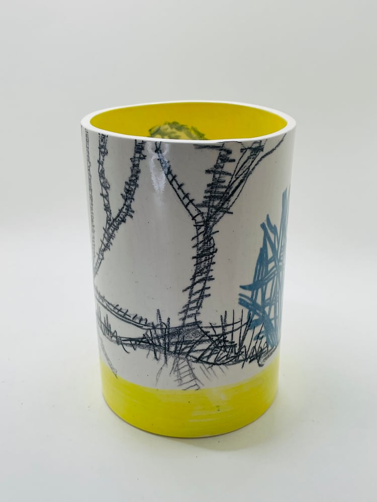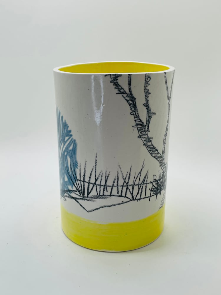 Inspired and informed by traditional Lowestoft Porcelain, the influence of 'blue and white' ceramics of the 18th century and the flora, fauna and history of life in the Waveney Valley. This piece is slipcast and handpainted. The white clay body creates a fresh canvas for the hand decoration. Each piece is handmade, bisque-fired and glaze fired. The drawings and paintings on the ceramics make each piece an original work of art.