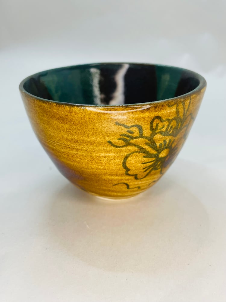 A Waveney Valley Willow thrown ceramic vessel decorated with Amaco glazes Tourmaline and Iron Lustre with an original drawn screenprint. The design is inspired by the willow trees, hedgerows, tracks and waterways of the Waveney Valley on the border of Norfolk and Suffolk.