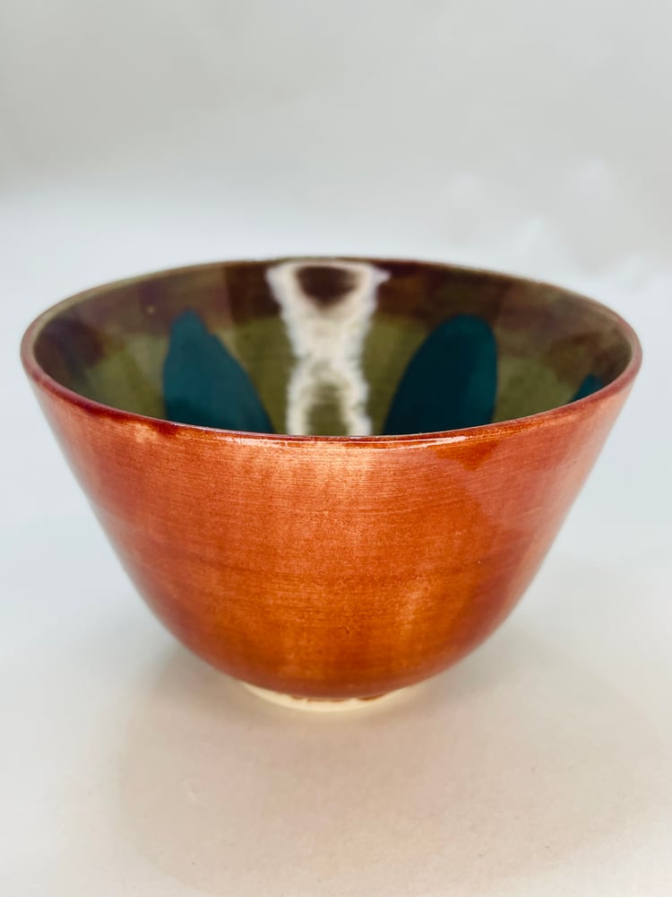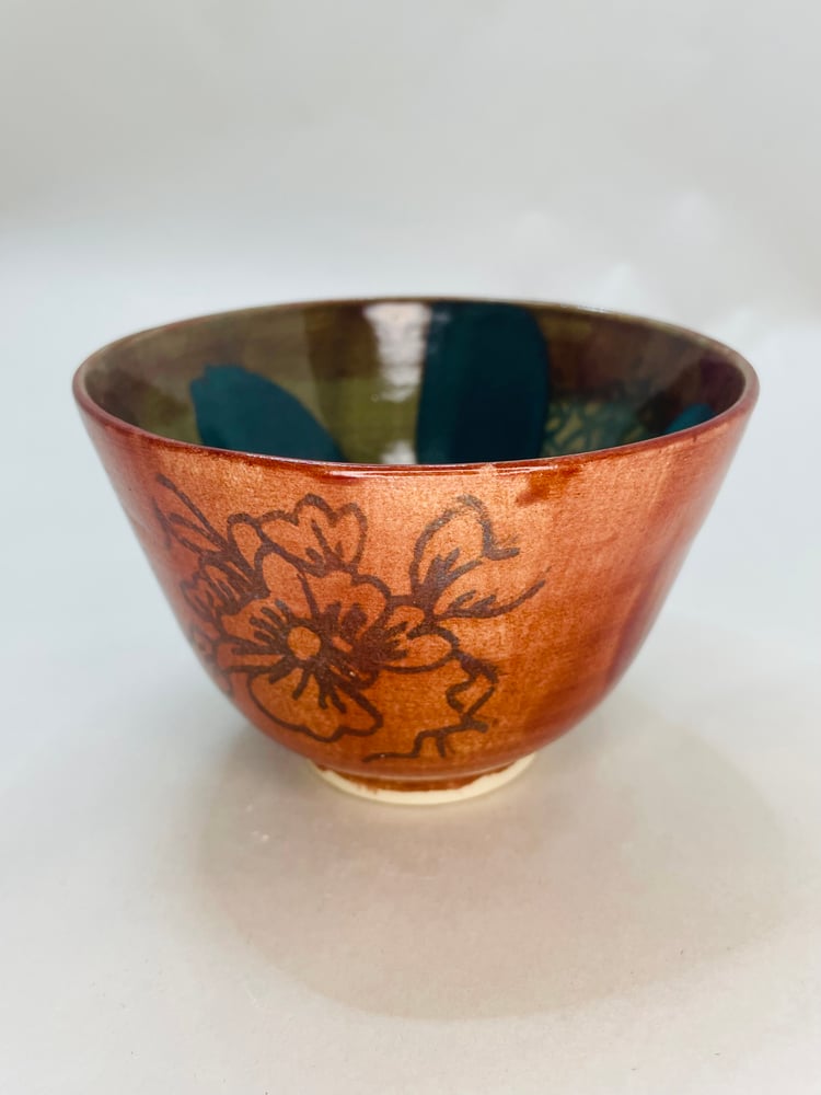 A Waveney Valley Willow thrown ceramic vessel decorated with Amaco glazes Tourmaline and Iron Lustre with an original drawn screenprint. The design is inspired by the willow trees, hedgerows, tracks and waterways of the Waveney Valley on the border of Norfolk and Suffolk.